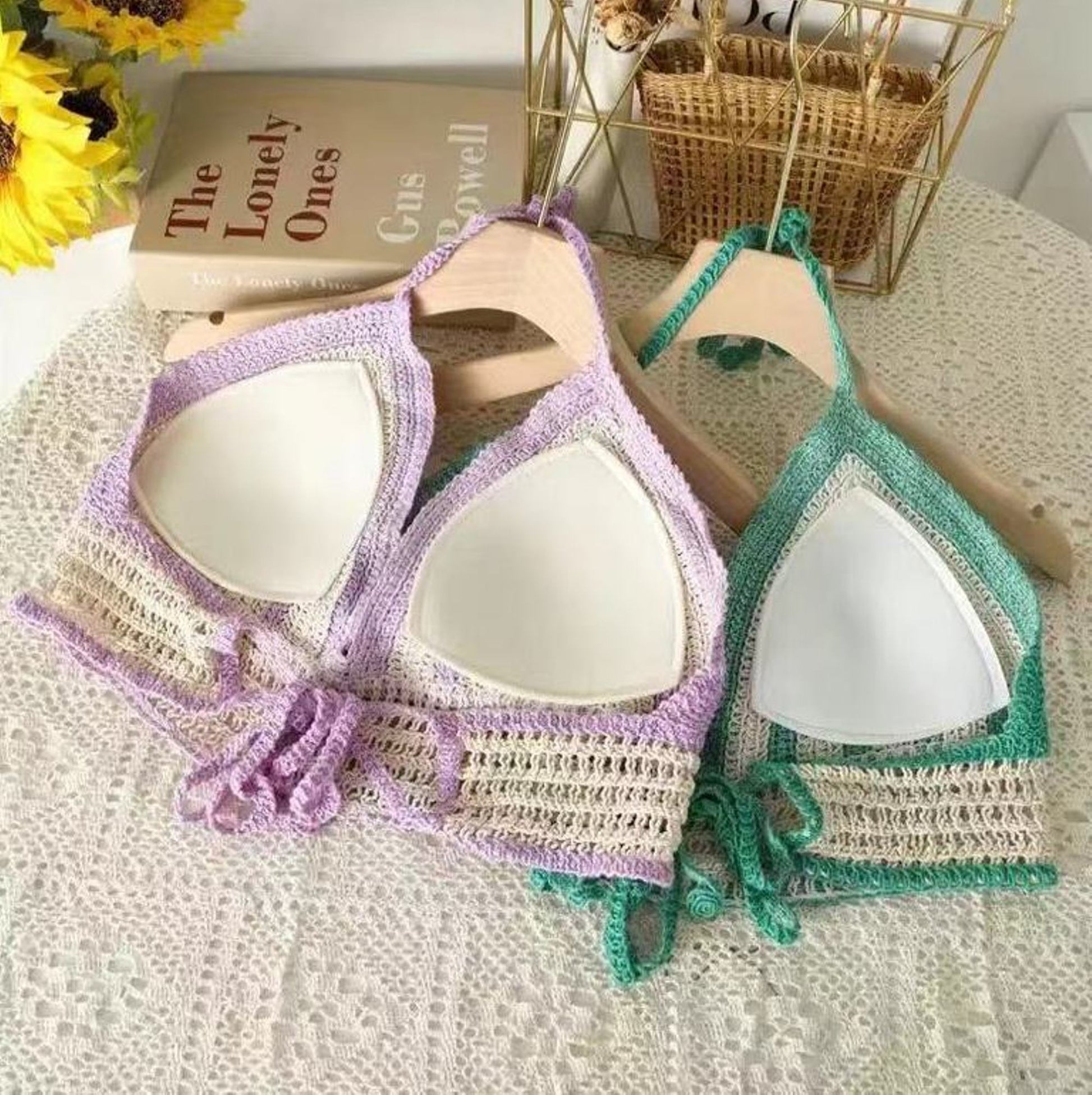 Fabme Women's Padded Crochet Halter Crop Top