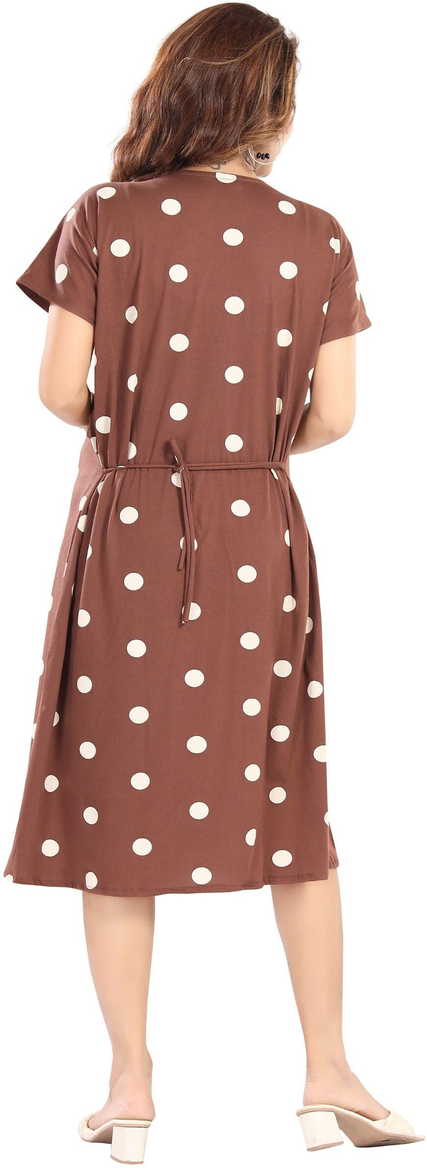 Fabme Women's Pre and Post Pregnancy Below Knee Length Nursing Nighty - Brown